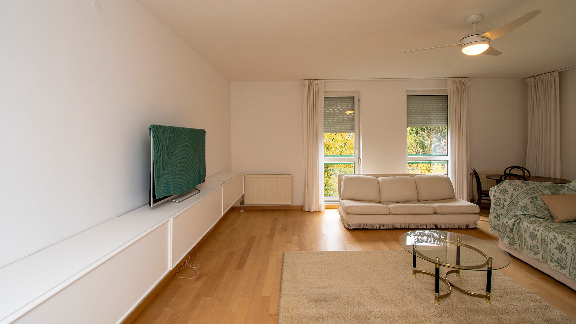 Die Wohnung verfügt über 2 Schlafzimmer, 2 Badezimmer und großzügige, gut nutzbare Räume. Dank der sorgfältig geplanten Gestaltung strömt reichlich natürliches Licht in die Räume, was eine angenehme, helle und freundliche Atmosphäre schafft.